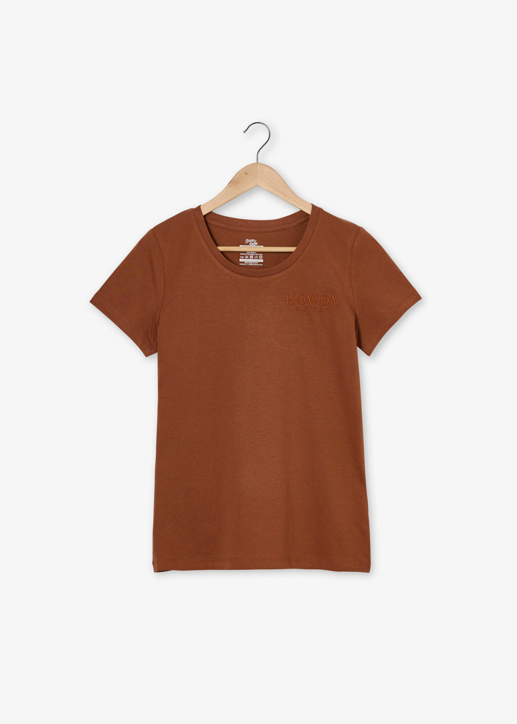 Ob Stalltag oder Alltag – dieses T-Shirt wirkt durch den Ton in Ton Stick edel und elegant.