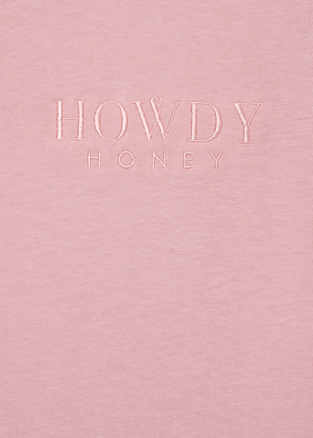 Jippie! Die Temperaturen klettern nach oben und es wird Zeit für frische und luftige Shirts, welche sich perfekt für die kommenden Frühlings- und Sommertage eignen! Unser neues veganes T-Shirt in weiß besteht aus 100% Baumwolle aus biologischem Anbau und ist mit seinem Ton in Ton Stick "Howdy Honey" ein echter Hingucker!