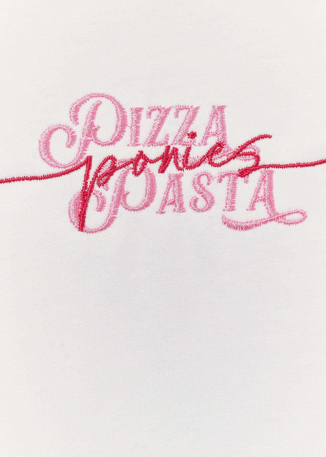 - Zweifarbiger Brust-Stick in Rosa & Rot "Pizza, Pasta, Ponies"