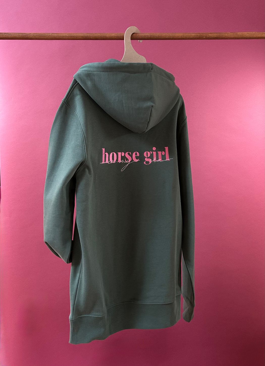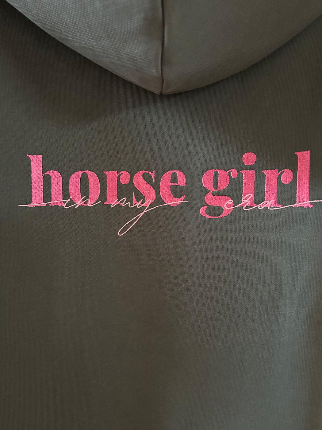 Jeder Hoodie wird in einer kleinen deutschen Manufaktur sorgfältig bestickt und veredelt. Das schlichte Design, kombiniert mit dem hochwertigen „In my horsegirl era“-Stick, sorgt für einen eleganten, authentischen Look mit Herz.