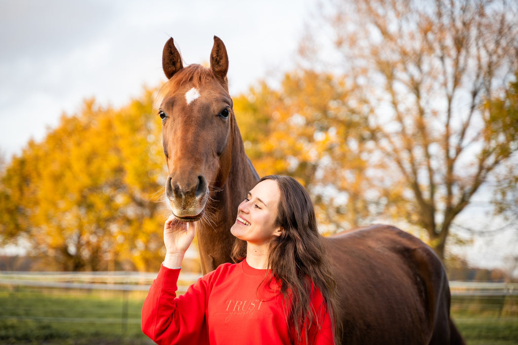 Der "Trust yourself" Sweater ist ein gemeinsames Herzensprojekt mit Anna feines Reiten und Barn Babe.