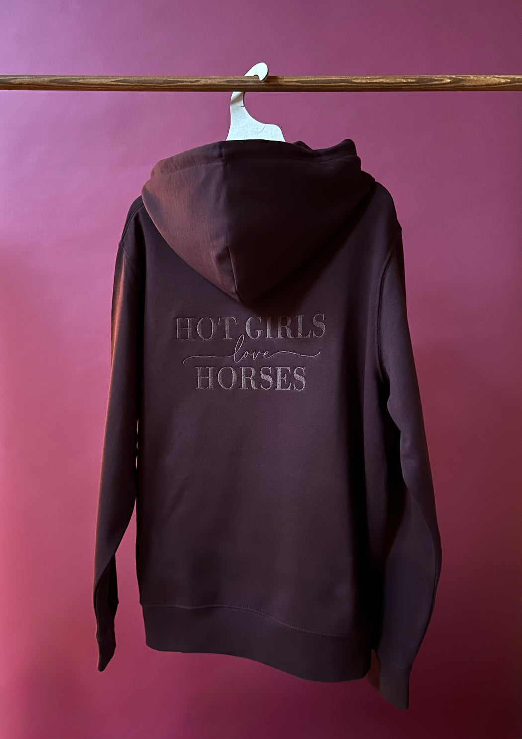Jeder Hoodie wird in einer kleinen deutschen Manufaktur sorgfältig bestickt und veredelt. Das schlichte Design, kombiniert mit dem hochwertigen „hot girls love horses“-Stick, sorgt für einen eleganten, authentischen Look mit Herz.