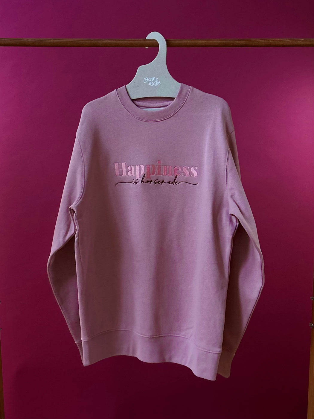 Der Happiness is horsemade Sweater ist dein neues Lieblingsstück für Stalltage, Spaziergänge mit deinem Herzenspferd oder entspannte Off-Duty-Momente. In warmem rosa gehalten und mit einem zweifarbigem Stick veredelt, verbindet er lässiges Design mit liebevollen Details – für Cowgirls, die das echte Leben im Sattel und am Boden gleichermaßen feiern.